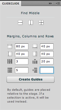 * Margins. If your document needs margins—say, for photo borders or to create margins for website layouts—all you have to do is define the size of the margins in pixels, inches, or a percentage of the overall document size. GuideGuide will place guides at those locations, defining one, two, three, or all four margins.