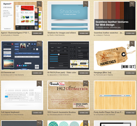Get this while you can! Creative Market, a new design element marketplace from the owners of ColourLovers.com, is offering its current inventory of 33 premium products free. You will have to sign up for a free account, but that’s easy—it won’t even ask for a credit card, just username, e-mail, and password. Armed with a free account the prices of all Creative Market inventory get slashed and the Download buttons activate. All items are royalty-free for commercial and personal use and run the gamut from background textures to vector clip art, complete user interface kits to PSD Web templates, icons to Photoshop brushes, and lots more.