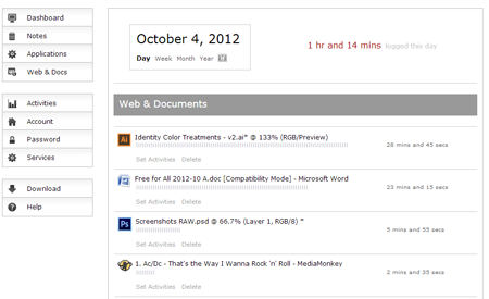 Slife offers two paid accounts: Plus is $5 per month and will track your usage of applications, documents, and Websites, as well as allow you to divide your activities in up to five categories—for example, to separate activities for five different clients. The Premium account, which will run you $10 per month, allows unlimited categorization and segmentation of activities.