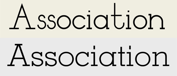 This free typeface (upper) is very poorly designed, with bad proportions, inconsistent stroke widths, varying serifs, and poor spacing. Notice the bumpy spine of the ‘s’ due to the inexperience of the its author drawing curved strokes. Novices often think that geometric designs are the easiest typefaces to draw, but in reality they are some of the most difficult. Below it is a setting of Memphis, a well-drawn slab serif with proper proportions and design characteristics.