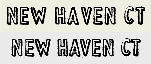 Upper: While the actual design of this free font has some merit, it contains no kern pairs, making for uneven overall spacing. It also has a very limited character set with no punctuation (except for a period) or figures. Lower: Both the letter and word spacing have been improved with the addition of manual kerning pairs, which requires skill and experience to get just right.