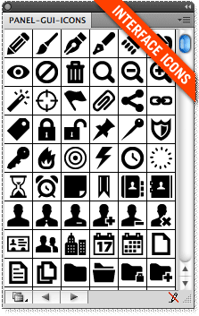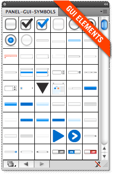 * Design usable application interface with hundreds of common GUI elements: just drop them from Illustrator Panels or pick them in the library files.