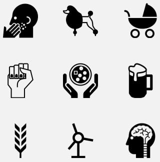 The symbols that make up the Noun Project are divided into 11 categories: