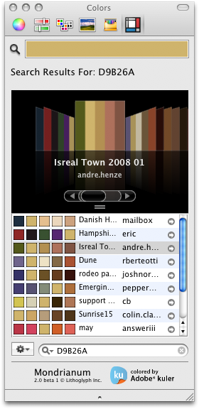 Mondrianum combines the best of the community content on kuler and the nativeness of Mac applications. If you work with colors on a Mac, be sure to check it out!