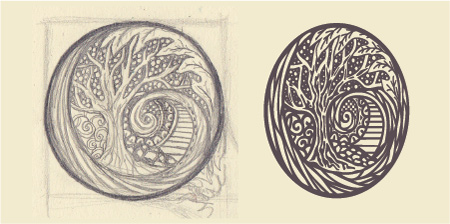 Figure 3. From intricate pencil sketch to final artwork– this fantasy world is another Wallflowers image.