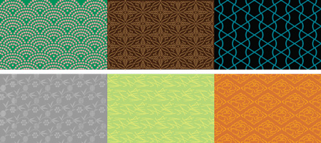 Figure 4. Patterns from two ornament fonts by Akira Kobayashi: ITC Seven Treasures (top row) and ITC Japanese Garden (bottom row).