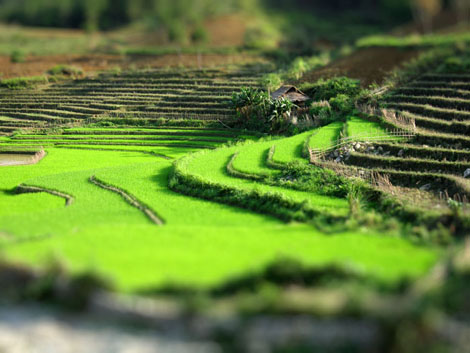 Close-up pictures of small objects usually have very shallow depth of field; that is, objects at a certain distance are in focus and things get blurry rapidly as you move closer or farther from that distance. In contrast, a photo of a far-away subject is more likely to have everything in focus. By using Bokeh to simulate that shallow depth of field, you can trick viewers into thinking they are looking at something small.