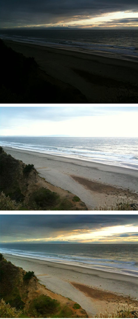 The following series shows the underexposed and overexposed images, with the merged result at the bottom: