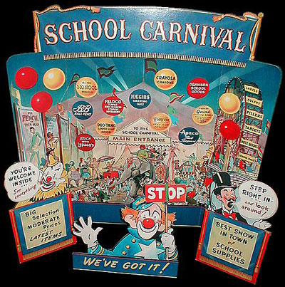 Back-to-school imagery is still about leading brands and licensed images, though many of them have changed since I was in the mill. School supplies weren’t quite as colorful and character-laden as they are today-the business of school was a little more serious, and the choices in supplies were limited. And we didn’t have backpacks, we had book bags-horrible canvas vessels that generally had the imprint of a local bike shop or office-supply store emblazoned on them. Graphics were simple and to the point, and much of the purpose was to create an atmosphere of uniformity and equality. Personal expression came from how you modified your items, and even then, we only had blue or black ink, not the rainbow of colors and textures available today.
