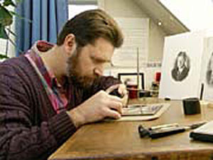 Figure 6: Here, master BEP engraver Tom Hipschen works on a portrait of Ronald Reagan. The engravers also prepare stamps, White House invitations, and other fine documents.