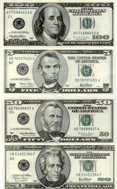 Figure 7: When the images were enlarged on our currency, new etchings had to be done — some taking up to 500 hours. The images were offset from the center to prevent folding damage to our presidents.