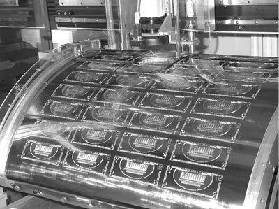 U. S. currency is still printed using the intaglio, or gravure method. In this process, images are etched (recessed) into chromium-coated plates that are then mounted on a sheet-fed rotary press. The intaglio process consists of three pretty simple steps. First, ink is applied to the plate, where it sinks into the recesses. Then, a blade wipes the plate clean, leaving only the ink in the recesses. Thirdly, nearly 20 tons of pressure is applied to press the plate against the paper (that’s why money is so flat) and the ink is squeezed out and on to the paper.