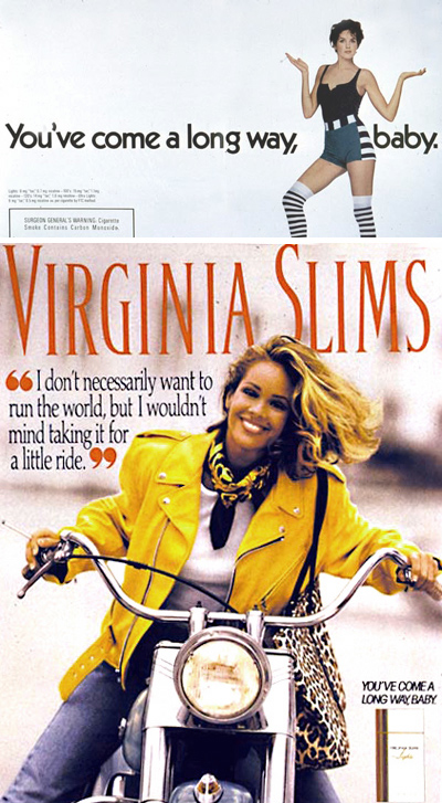 Women were the biggest target of tobacco companies after World War II, and a number of special women-only brands were marketed, the most successful being Virginia Slims, the cigarette for the woman who had “come a long way baby.”