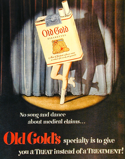 Apparently, the brains behind Old Gold’s 1952 campaign decided to eschew lies about health benefits of smoking and appeal to the hedonists in the smoking population.