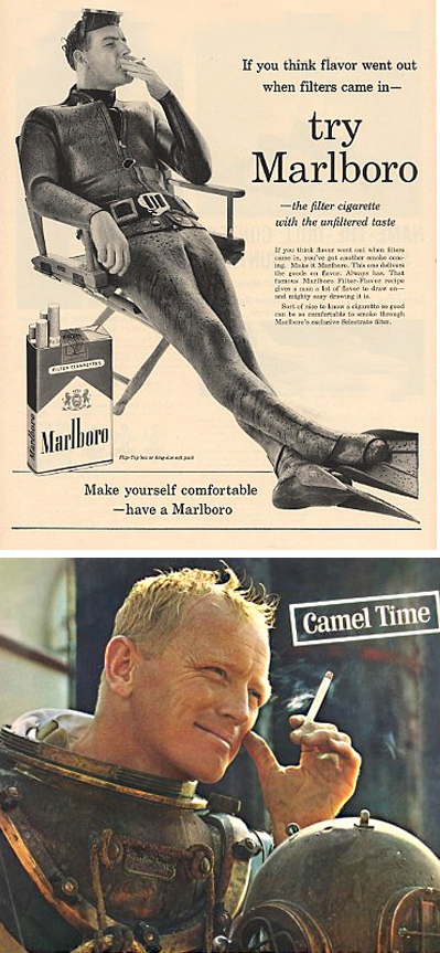 In the 1960s, smoking was linked with activities like deep-sea diving that required healthy lung activity. Many ads of the era pictures swimmers, divers, surfers and others enjoying a refreshing cigarette as part of their outdoor activities.