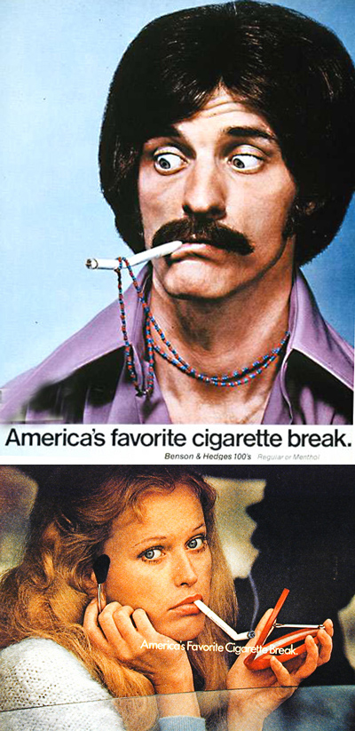 Not many tobacco companies distinguished themselves by humor, though Benson and Hedges, the longer cigarette, did so very successfully in the 1970s.