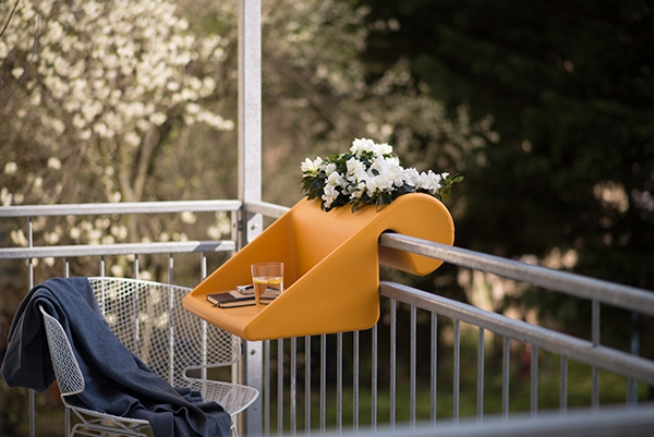 A great little desk—and bonus flower box—for working on your deck or patio equipped with a railing. When you’re done working, you can serve dinner on it and fill the top section with ice and your favorite beverage!