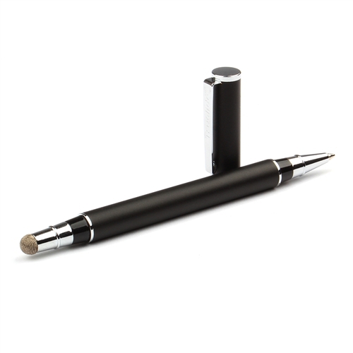 A nicely-weighted and well-crafted stylus and writing pen combo. The stylus works on any capacitive screen surface and the pen takes Parker refills.