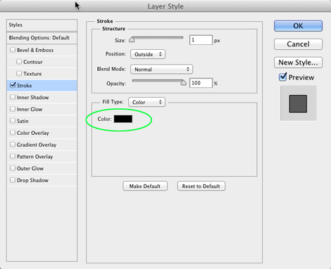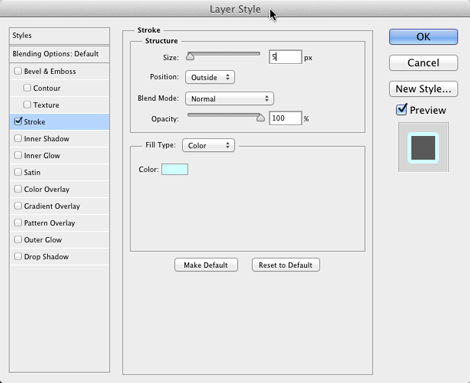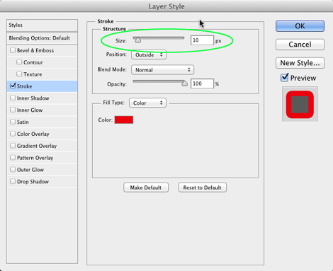 Back in the Layer Style dialog, select a stroke Size in the Structure area. Click OK.