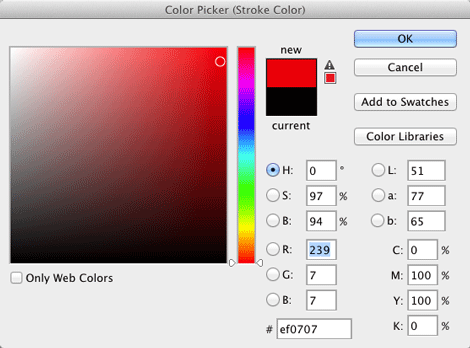 In the Color Picker dialog, choose a color for the stroke that will be next to the fill color in the type.