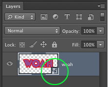 You’ll know it works when Photoshop changes the brackets around the Type layer and adds a funky icon to the lower-right corner of the layer.