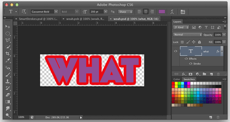 If you use CS5 or earlier, Photoshop’s Smart Objects is the better choice. Once you know one simple trick—converting your text into a Smart Object—you can easily add multiple strokes, each with its own color and size. Your only limitation will be good taste. If you have Photoshop CS6, see the end of this tutorial for an even easier method.