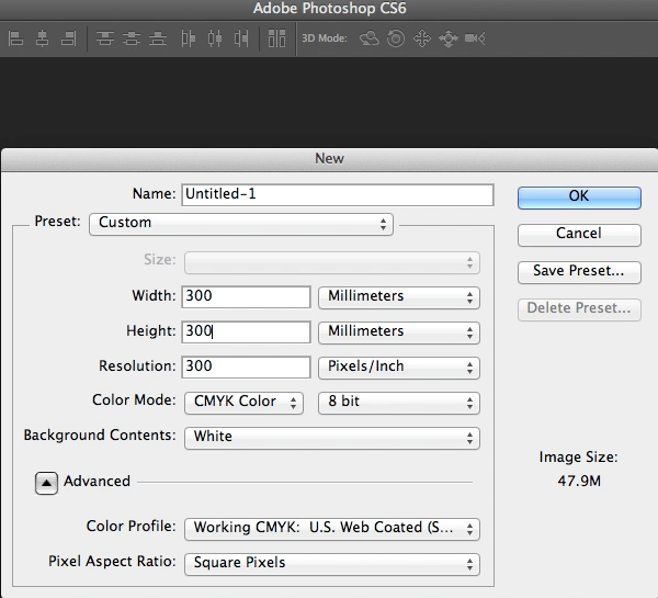 If, however, this is going to be a web banner or a background for your Facebook cover, you won’t need such a large canvas and a resolution of between 72 and 155 dpi will suffice.