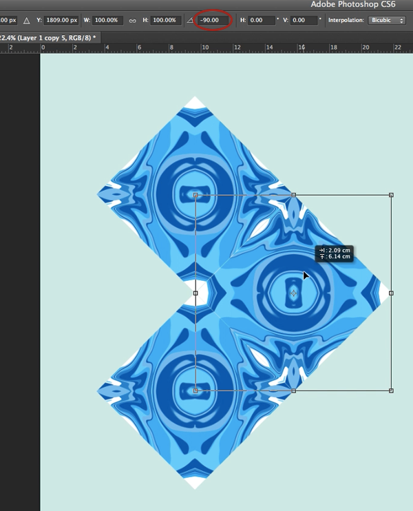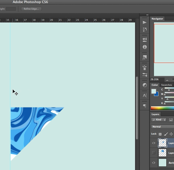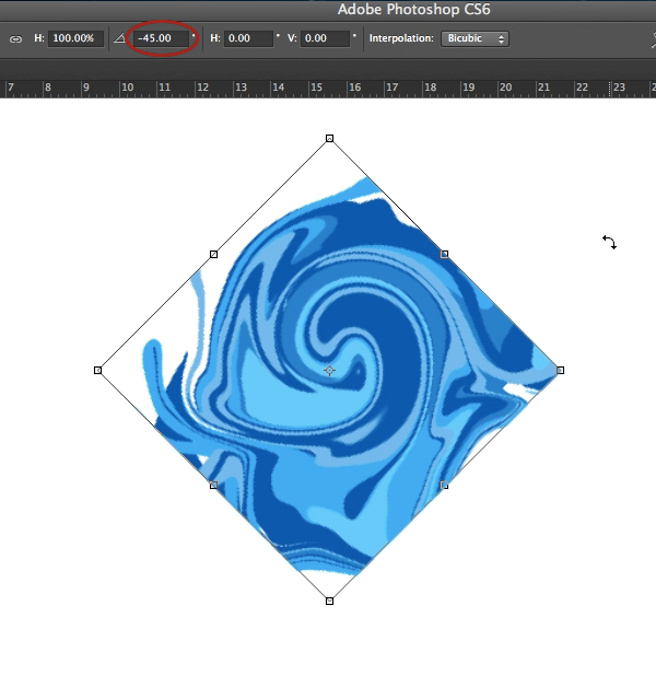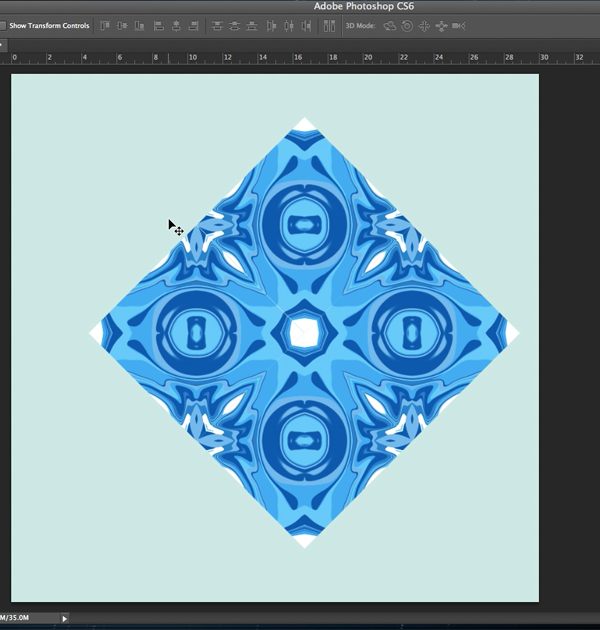 Press Enter to confirm the transformation, then cut a triangle shape out of the tile with the Marquee tool: select the top part of the square and hit Backspace to delete it, then Cut the remaining half of the triangle.