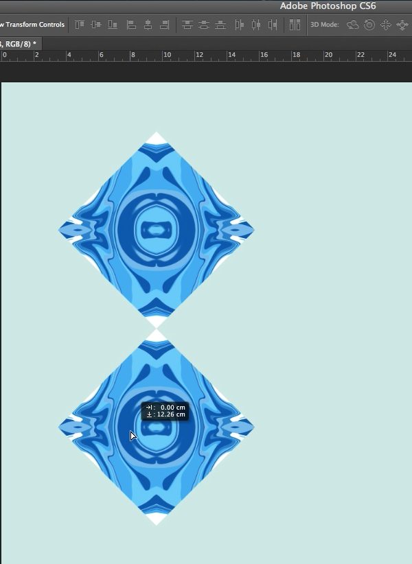 After you confirm the transformation by hitting Enter, align the triangles so they create a single square like in the screenshot below. Merge the layers in the same way you merged the previous two.