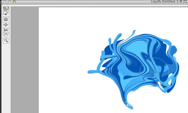 Open the Liquify window by selecting Filter > Liquify (Ctrl+Shift+X). This is where you’ll make your scribble a bit more dynamic, fluid, and interesting. Using the Liquify tools on the left, smudge colours and warp different areas.