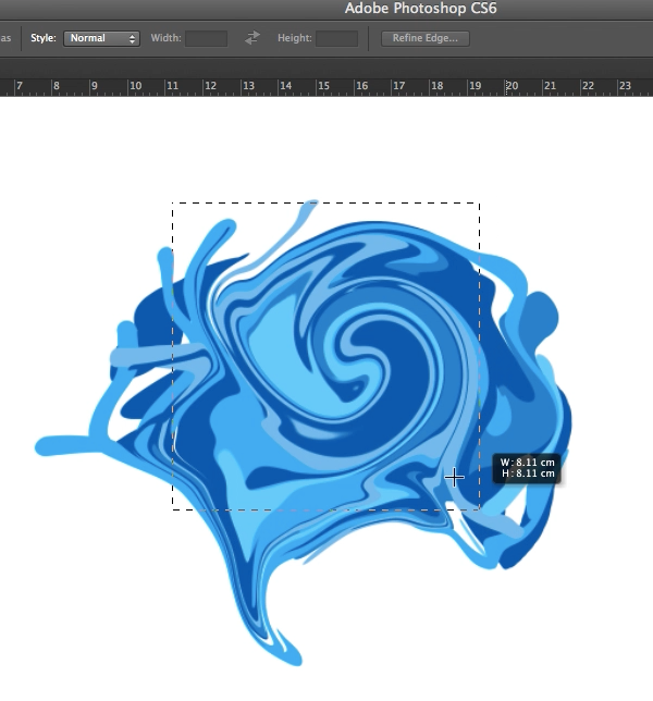 Once you’re happy with what your random scribble has become, click OK on the right hand side to save it. This will bring you back to the main canvas, where you’ll need to cut the scribble into a square. You can do that with the Marquee tool from the tool box on the left (Shortcut M), holding Shift while selecting to keep it square.