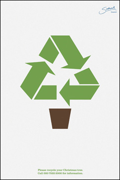 A 2006 poster for Southwark Council is another strongly iconic project. A recycling symbol represents a Christmas tree in a campaign designed to encourage citizens to recycle their trees after the holidays (Figure 6).