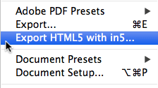 With in5 is installed, you get a new choice in the File menu to export as HTML5: