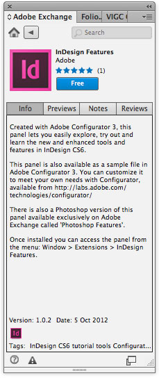 To get the InDesign Features panel, you first need to download and install theĀ Adobe Exchange panel. Inside the Exchange panel, you can browse for many other extensions (both free and paid) to add features to your Adobe applications.