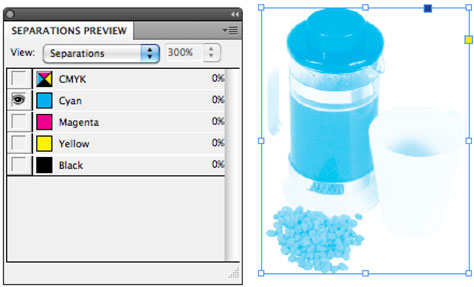 Figure 5. The Separation Preview panel displaying the cyan and magenta inks. Notice there is very little cyan or magenta ink in the area for the cup.