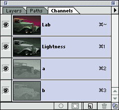 Photoshop’s Lab mode consists of three channels: Lightness, a and b.