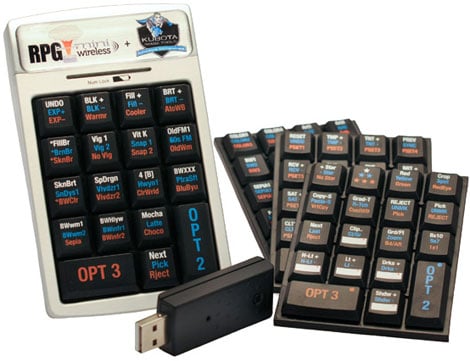 Kubota Image Tools is pleased to announce the newest addition to the Kubota Lightspeed Workflow family – new Kubota RPG SpeedKeys 2.0 for Lightroom 2. Kubota RPG SpeedKeys 2.0 for Lightroom 2 is a customizable wireless USB keypad with preset 1-button access to: essential adjustments such as brightness, exposure, fill light and more; the most popular Kubota Lightroom presets; and advanced tools such as paint with light, burn, soften skin, and hand-color.