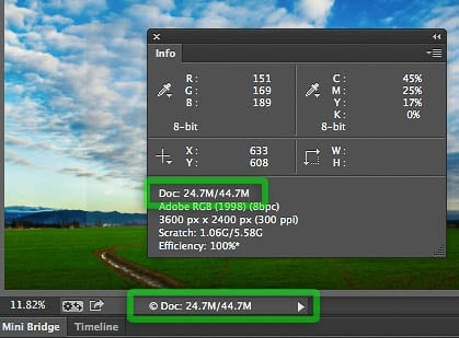 The 20.6 megabytes shown above is based on the document using 8 bits per channel (bpc).