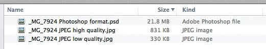 If you’re handling hundreds or thousands of images for a book or a web site, file size differences can add up quickly, not just affecting how much space you need to store your images but also how much time it takes to upload or download them from project servers, or to back them up.