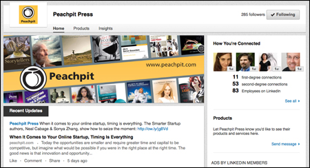 Figure 1: Peachpit Press’s page on LinkedIn is a good example of a well-developed company page.
