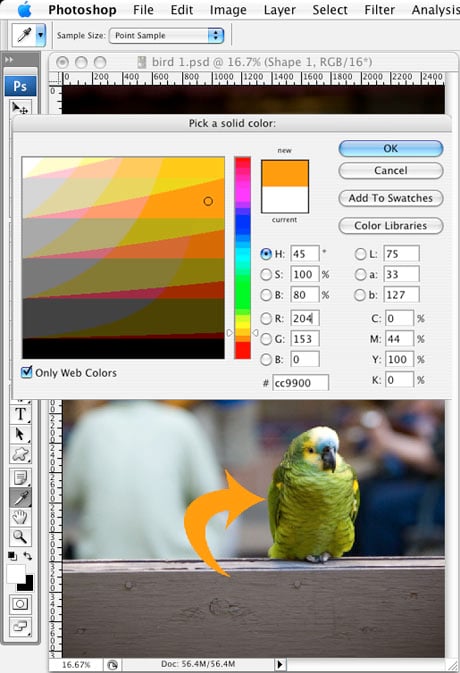 Initially, the arrow is filled with the foreground color, but that’s easily changed by double-clicking the color swatch thumbnail in the shape layer that you just created and choosing another color (Figure 3).