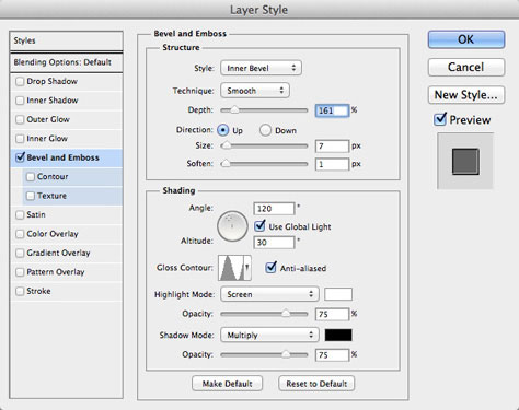 The trouble with the glossy edge you’ve just created is that it needs to be much thinner at the back to look natural. Duplicate the leaf layer, open the Layer Effects dialog again, and reduce the size of the bevel to just two or three pixels.