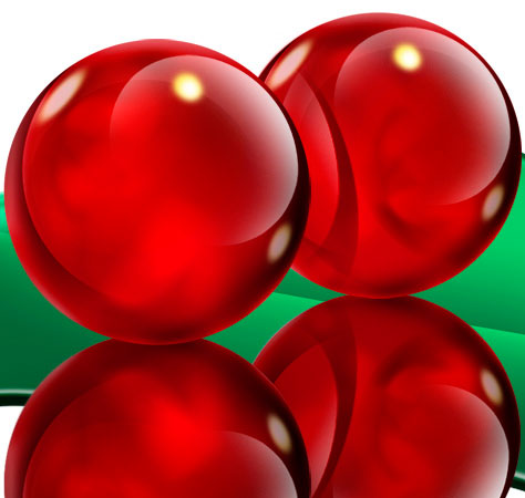 Duplicate the highlight and use Free Transform to distort it so it’s long and thin; rotate it so it matches the angle of the berry’s edge, and place copies on either side of the berry. The distortion gives the effect of the light spot being bent around the berry, which makes it look more three-dimensional.