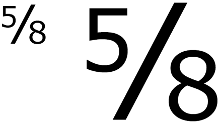 Figure 3. Because the kerning adjustments used to position the characters of the fraction on the left were expressed in relative units — fractions of an em — they have the same net effect even when the fraction is tripled in size, on the right.