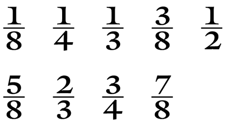 A half of an em is an en. If you consider the shape a lowercase m, this is a very clever name. But because em and en sound so much a like, an en was often called a nut in type shops of yore. This gave its name to certain other characters whose widths were half an em wide, such as the nut fractions shown in Figure 4: