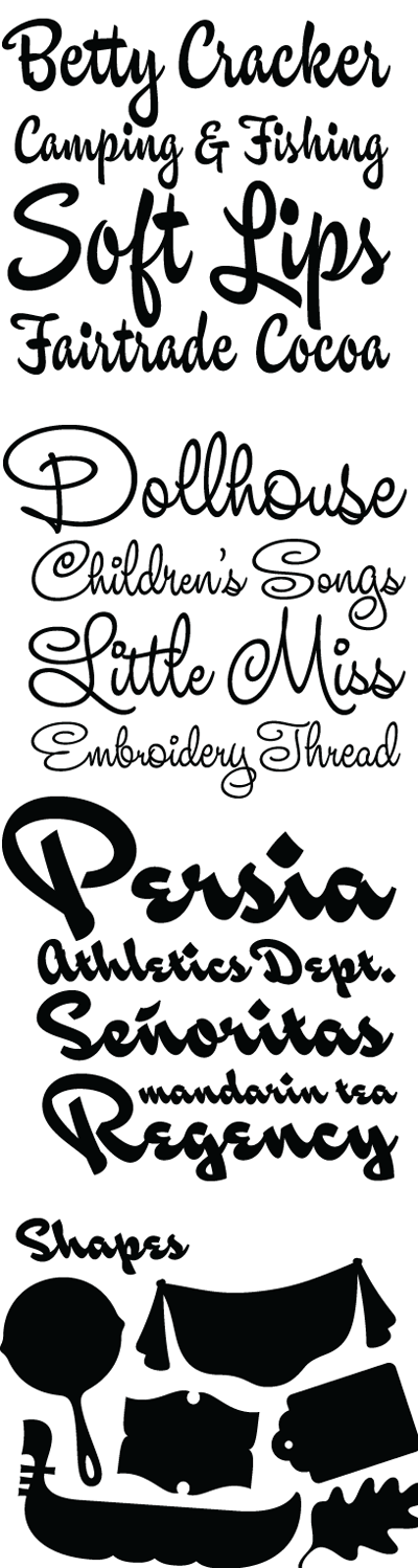 – Shapes, offering more than 50 convenient creative aids in a handy font format. Many of these decorative ornaments were specially engineered to work together to create dynamic banner treatments.