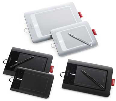 Bamboo Fun ($199 USD), in stylish silver, combines pen and Multi-Touch in a larger-sized tablet than Bamboo Craft or the other Bamboo solutions. It is ideal for home creatives or photo enthusiasts looking for more control and freedom of movement when their fingers or pen are positioned on the tablet surface. Bamboo Fun ships with Adobe Photoshop Elements, Corel Painter Essentials and Nik photographic filters.
