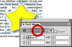 These options seem like they would cover all situations until you discover that InDesign applies text wrap differently from QuarkXPress. In XPress, text wrap is applied only to text below the shape that has the wrap applied. If the text is above the object that has a text wrap applied to it, the text does not reflow.