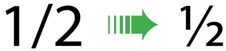 In an OpenType font adapted for fraction-building, the keystrokes shown here on the left are automatically converted into a fraction, like that on the right.