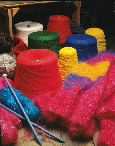 Figure 6c: Converted for a Web press space using relative colorimetric rendering. Note the plugged-up detail on the top of the cone of red yarn.